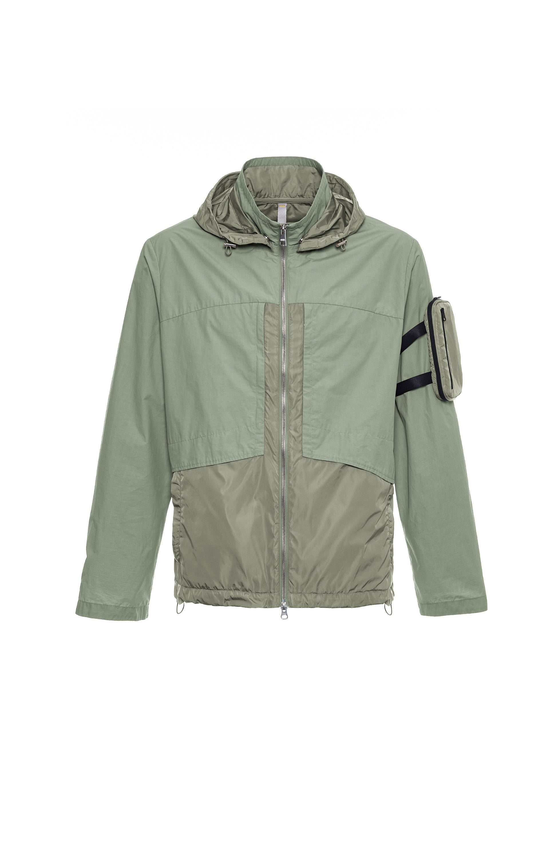 Lekka kurtka wykonana z połączenia oddychających materiałów odpornych na deszcz. Posiada kieszenie boczne, jedną odpinaną kieszeń na smartfon na rękawie oraz lekki kaptur.
